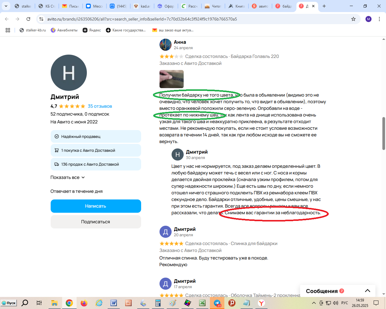 "ПУ-ткань" и "Сэндвич" ("ПАКРАФТы" в 25 г закончились, их производство остановлено в связи с отсутствием ткани "корд") Вариант поставки "ПУ-ткань" получил название по материалу вставных камер (баллонов) - ПУ-ткань. Это традиционный (с 1997г) материал для баллонов - ткань, покрытая с одной стороны полиуретаном (170-250 г/м2). Корпус в этом варианте также изготовлен из традиционных материалов: дно из обычной ТЕЗЫ (ткань, покрытая ПВХ с обеих сторон, вес с 2020 г. 650 г/м2, прочность на раздир по надрезу - teer stress - 30 кг по ГОСТ), остальное - из сумочно-рюкзачной ткани Оксфорд-600 (220 г/м2, teer stress ~10 кг). Это самый дорогой, тяжелый и надежный вариант. Вариант поставки "Сэндвич" отличается от предыдущего тем, что он укомплектован вставными камерами (баллонами) из легкого и дешевого материала "Сэндвич". Это нетканая структура ПЭ-ПА-ПЭ (полиэтилен-полиамид-полиэтилен). Впервые в России она была применена нами осенью 2018г., 120 г/м2). Она отличается от похожих на нее ПА-ПЭ пленок наличием двусторонней защитой прочного, но хрупкого ПА-слоя несколькими слоями мягкого ПЭ. Это самый дешевый вариант. Вариант поставки "ПАКРАФТ" (с 2025 г. неактуален!) также, как в предыдущем случае, комплектуется легкими вставными камерами (баллонами) из материала "Сэндвич", а в корпусе вместо сумочно-рюкзачной ткани Оксфорд-600 применена легкая ткань "Корд" (110г/м2). К сожалению, в связи с эксклюзивностью заказа материал "Корд" вдвое дороже Оксфорда-600. Кроме того, не удалось уговорить ткачей его покрасить - он имеет бледный цвет пропитки. Поэтому мы продавали аэрозольные краски для самостоятельного разрисовывания деки - фото) К еще большему сожалению, по крайней мере, до окончания войны этого материала и варианта "Пакрафт" не будет. В 25 г продан последний н450-пакрафт. Внимание, ребрендинг! После запуска осенью 2018г. "бюджетного" варианта с баллонами "Сэндвич" мы ввели для традиционных судов с ПУ-тканевыми баллонами название "Классика". Однако наши "пираты", которые в 2011г. открыли сайт с похожим на нас названием "Сталкер-КБ" и используют баллоны из дешевой и недостаточно надежной пленки (структура ПА-ПЭ, впервые в России применена нами в 2004г.), стали использовать это слово для обозначения своих подделок. Поэтому мы вынуждены отказаться от термина "Классика". - "Щуки" и "Налимы": в комплекте судно в сборе со вставными надувными баллонами из соответствующего материала, проверенное под давлением (24 часа, 0.2 атм.), рюкзак-упаковка и ремнабор. - Катамараны: в комплекте 2 поплавка (каждый состоит из "шкуры" и вставной надувной камеры из соответствующего материала), рюкзак-упаковка и ремнабор. Рама в комплект не входит - она либо вырубается в лесу, либо приобретается отдельно (дюралюминиевые трубы). Палубы для размещения груза и пассажиров приобретаются отдельно. Надувные сиденья для спортивного использования приобретаются отдельно. См. также раздел "Катамараны" и статью с советами по использованию катамаранов "О катамаранах" В ремнабор входит ПУ-клей, ацетон, пробки. Ткань на заплаты для днища и камер (баллонов) вшита или вложена в рюкзак-упаковку. 10 лет (кроме вставных баллонов из пленки "Сэндвич" - на них 3 года). Баллон считается бракованным, если за сутки он теряет больше половины исходного избыточного давления 0.2 атм. По гарантии производится ремонт или замена по выбору мастера. Ремонт производится в нашей мастерской в Москве. 